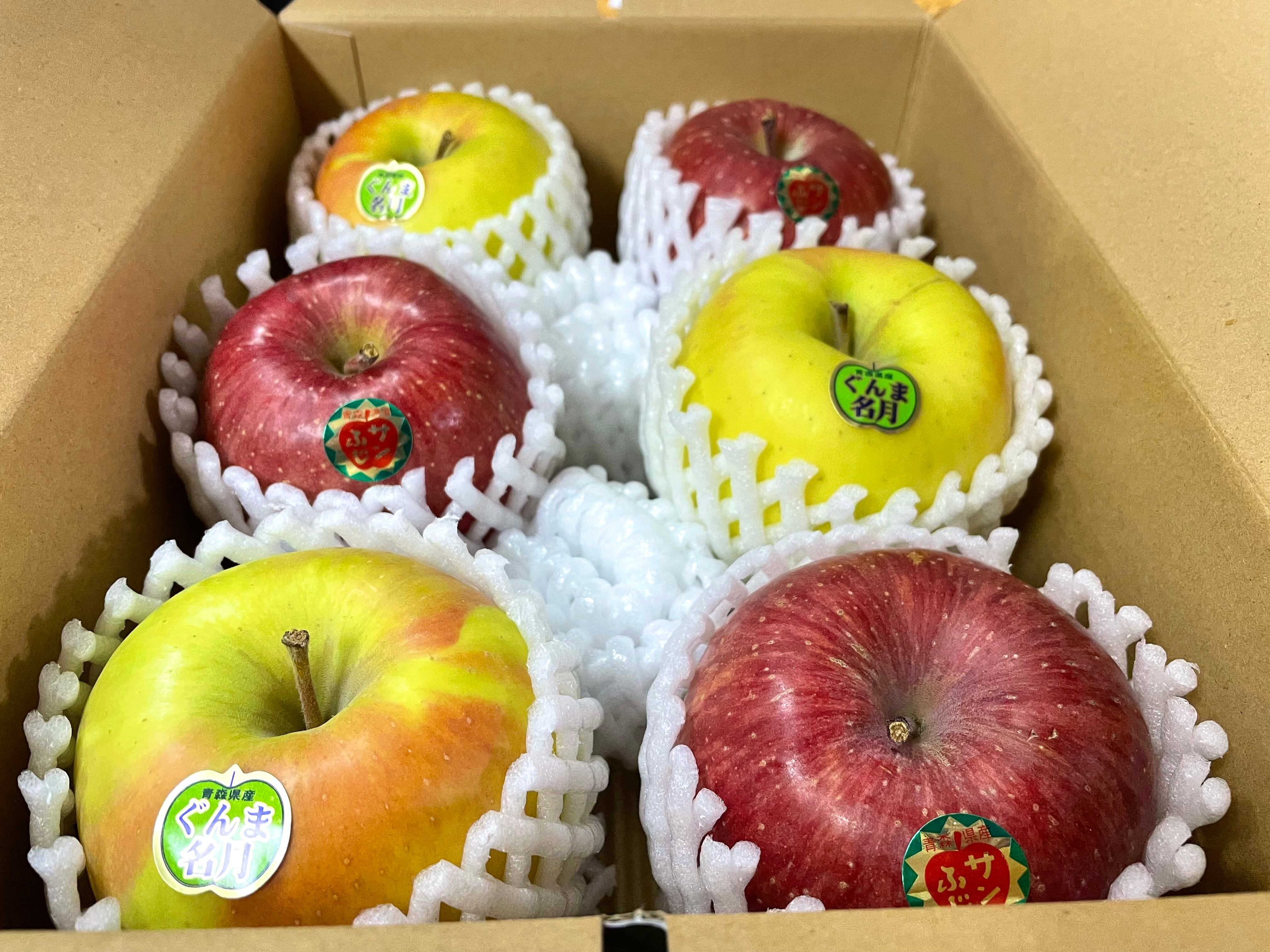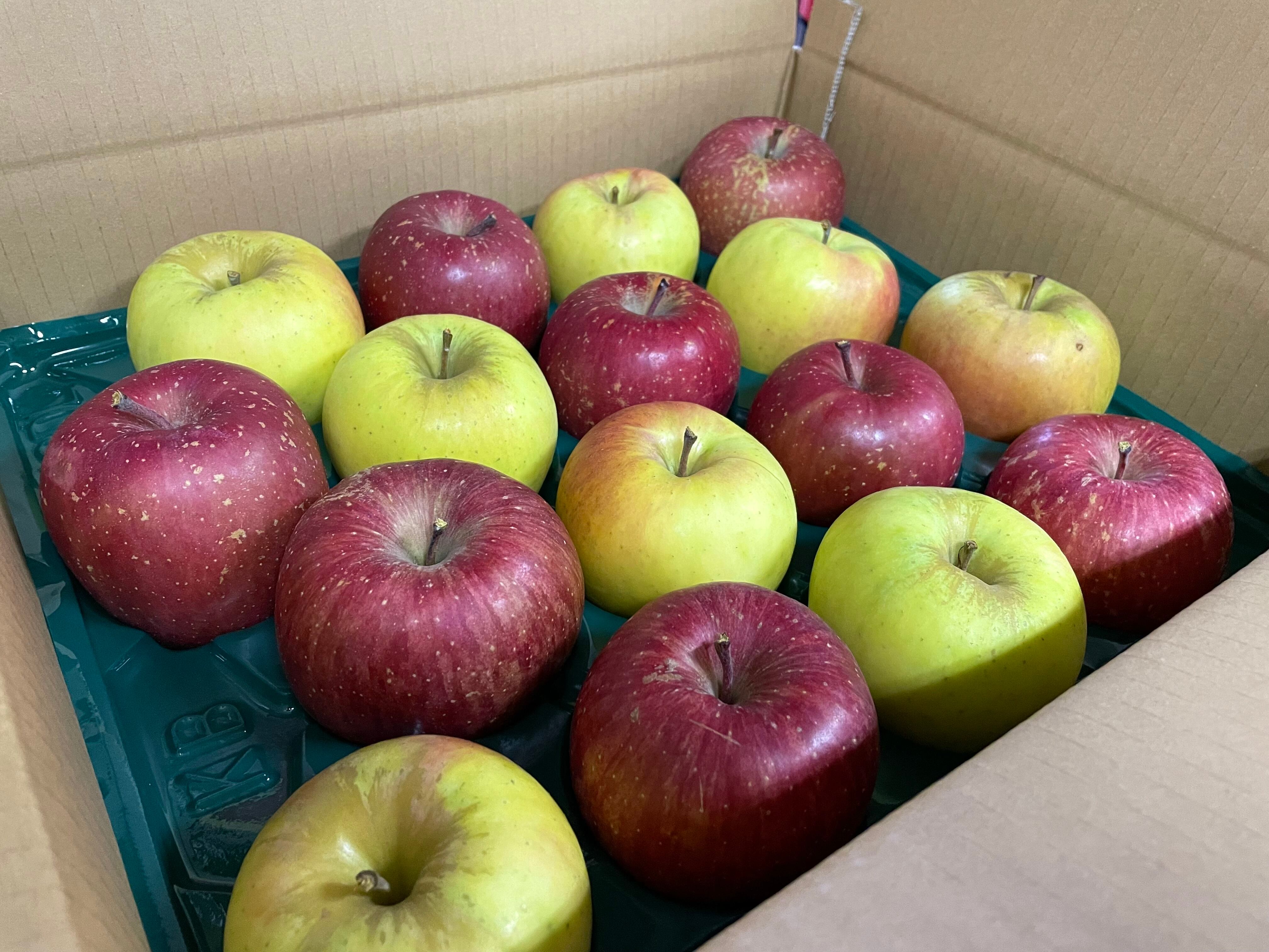 [特徴] 甘みが強く果汁たっぷりな「あかぎ」×リンゴの王様「ふじ」を交配して作られました。果皮は黄色でうっすらと桃色に着色するため華やかな見た目をしています。甘味が強く、みつが入りやすいことに加え、実が大きいためしっかりとした食べ応えを感じることの出来る品種です。